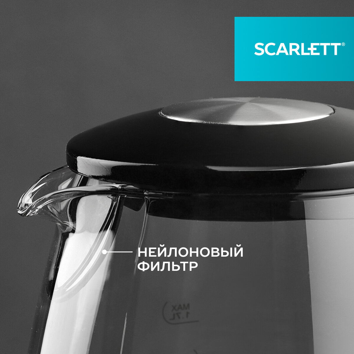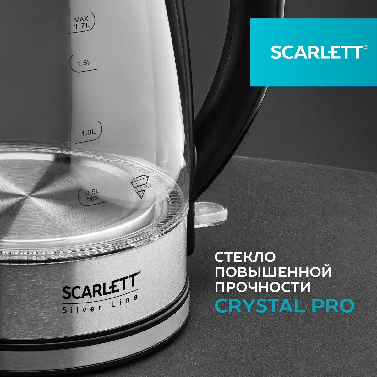 Чайник электрический Scarlett SC-EK27G95 1.7л. 2200Вт серебристый/черный (корпус: стекло) SC-EK27G95