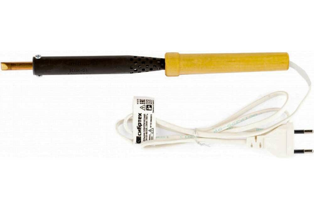 Лучшие цены. Электрический паяльник Сибртех ЭПСН-03-80/220 91310 с деревянной ручкой используется для пайки электросхем, проводов, небольших деталей. Мощность инструмента составляет 80 Вт, поэтому он успешно справляется с поставленными задачами. Паяльник используют для ремонта бытовой и радиотехники, а также во время обслуживания автомобилей.ПреимуществаЖало изготовлено из меди, поэтому быстро нагревается.Конструкция предусматривает возможность быстрой замены жала, что упрощает работу с инструментом.Нагревательным. Магазины в вашем городе.