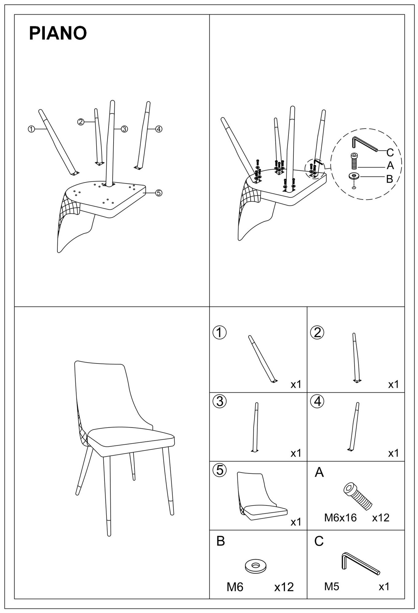 Стул SIGNAL PIANO VELVET, черный