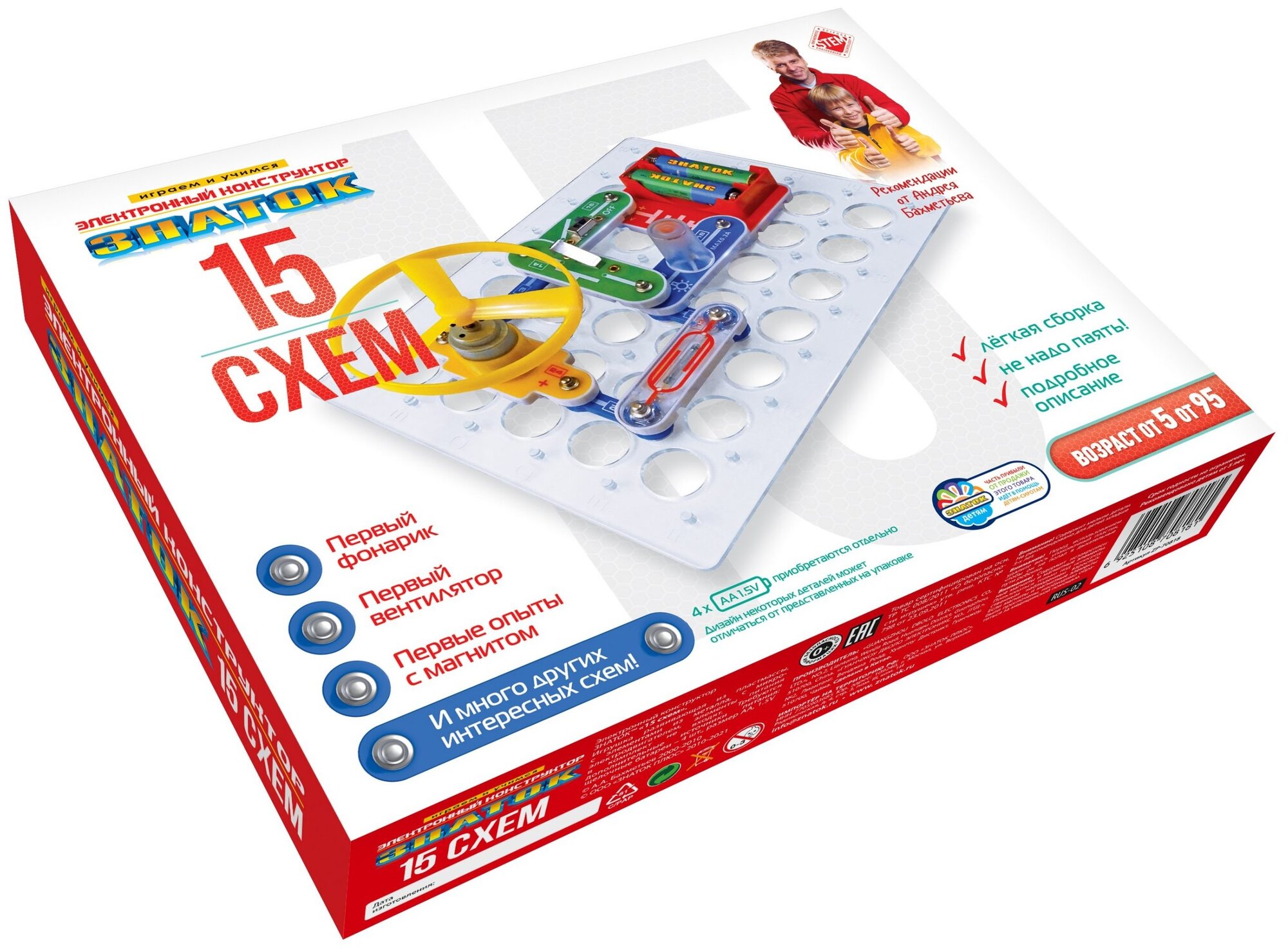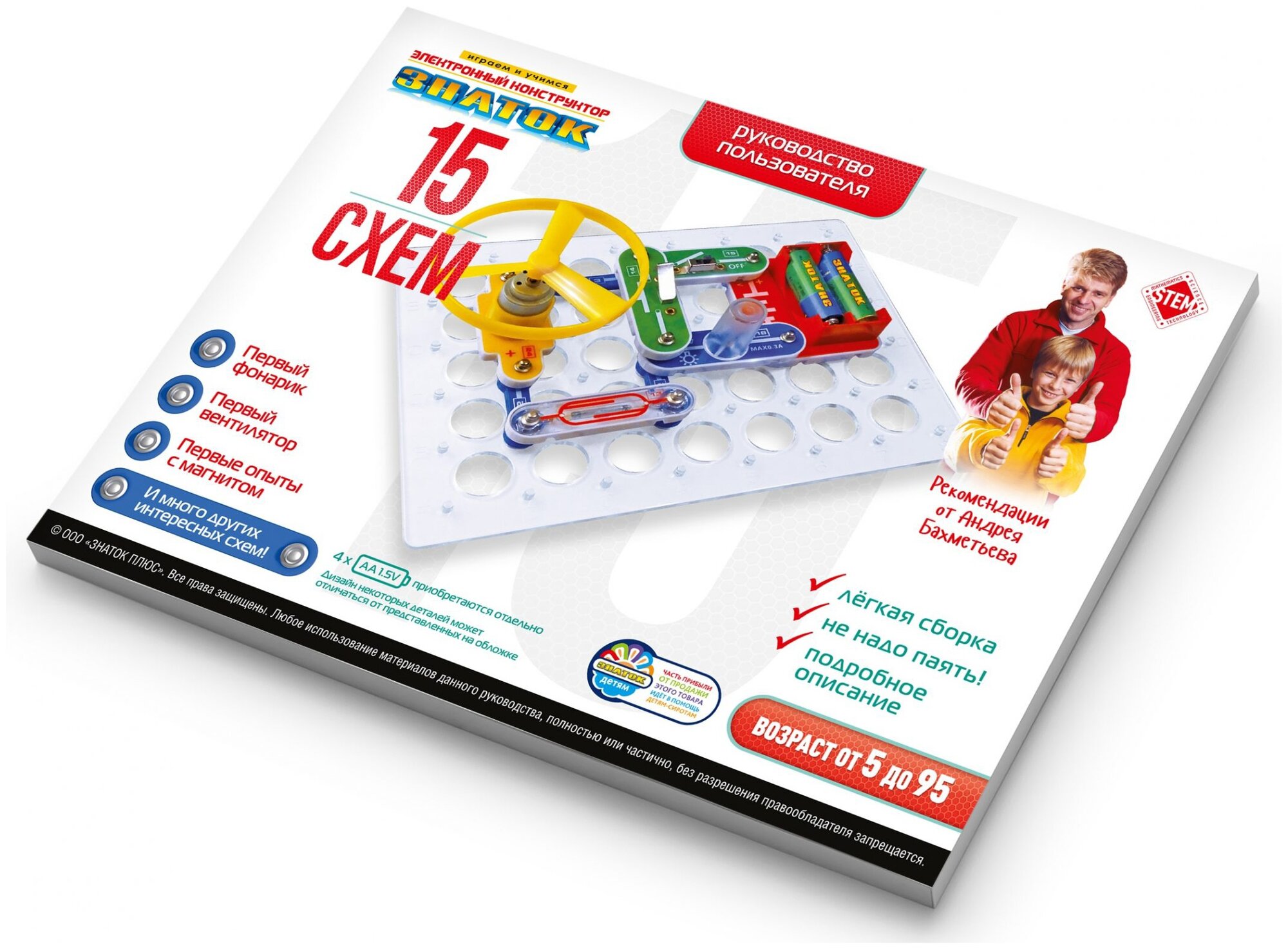 Лучшие цены. Вам будет предложено собрать свой первый фонарик, первый вентилятор, провести первые эксперименты с магнитом – всего 15 разных проектов, наглядно показывающих принципы работы простейших электронных устройств. Для того чтобы ребёнок научился не просто собирать электрические схемы, а задумывался над собранным проектом, мы поместили комментарии с пояснениями и задания на быстрое усвоение важных знаний по физике. Простота соединений и ясность описания позволяет собирать сложные схемы даже ребенку пяти лет. Магазины в вашем городе.
