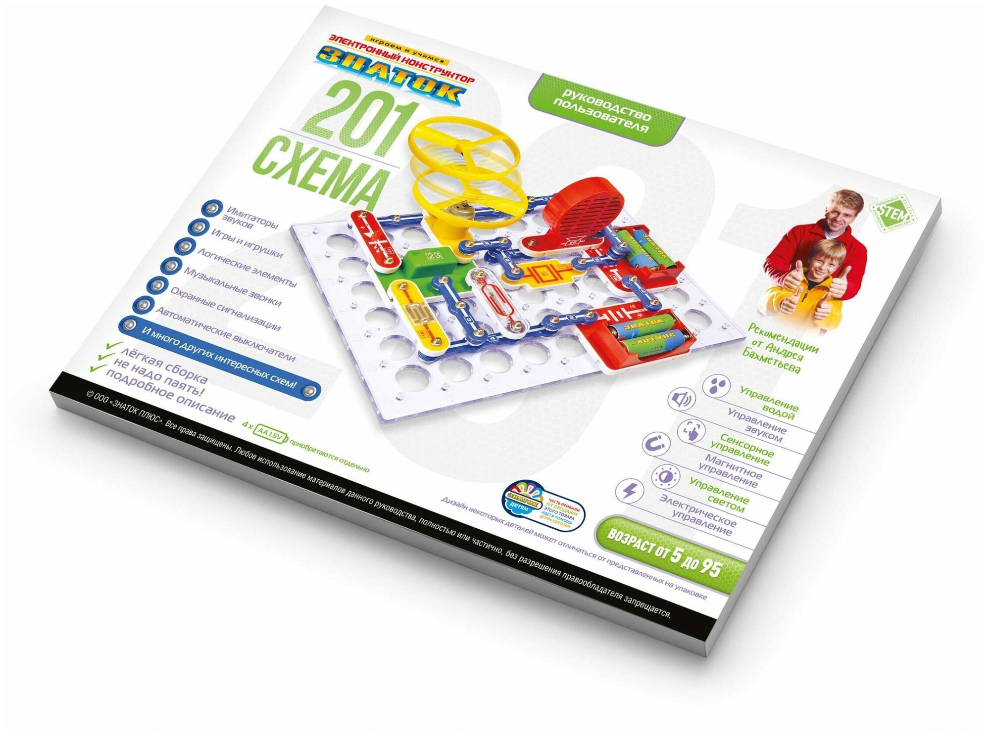 Лучшие цены. Электронный конструктор начального уровня, позволяющий ребёнку познакомиться с удивительным миром электроники. Даже без помощи взрослых, используя только очень понятное цветное руководство, всего за несколько минут, он или она смогут собрать одну из 201 схемы, на которые родители 10 лет назад тратили целые недели. 100% положительным результатом можно удивить родителей, друзей, учителей. Абсолютная безопасность и простота сборки — не надо паять! Конструкторы рассчитаны практически на любой возраст. Магазины в вашем городе.