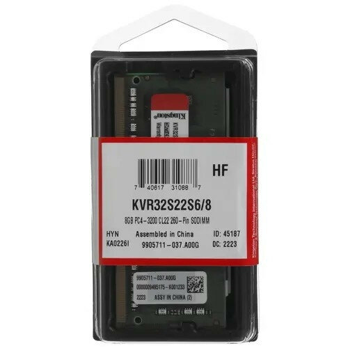 Модуль памяти Kingston DDR4 SO-DIMM 8Gb 3200МГц CL22 (KVR32S22S6/8)