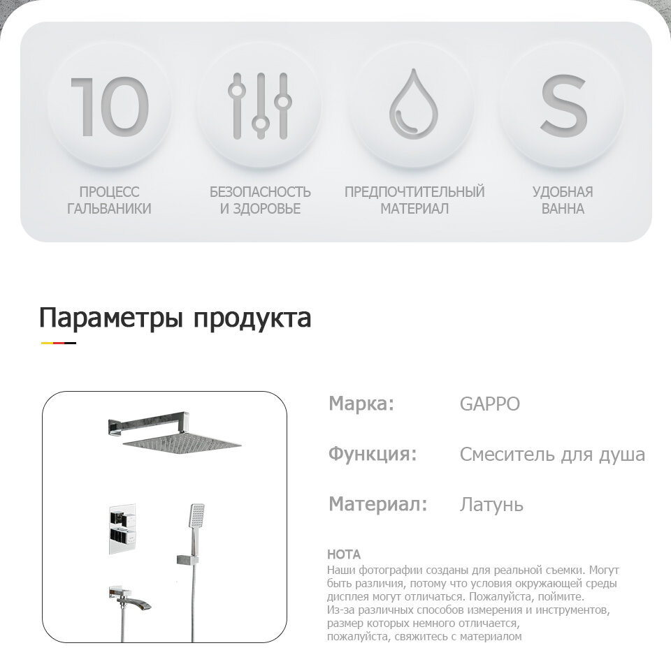 Душевая система Gappo G7107-40 с термостатом, встраиваемая, хром (6959477656798)