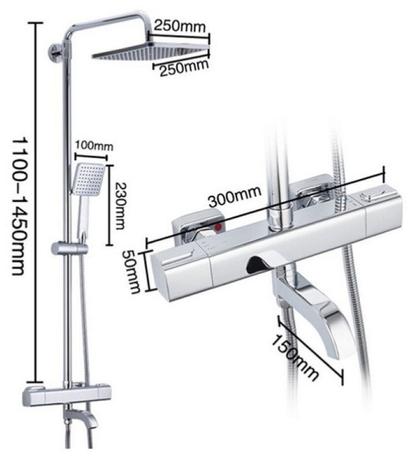 Душевая стойка Gappo G91 G2491 с термостатом, хром