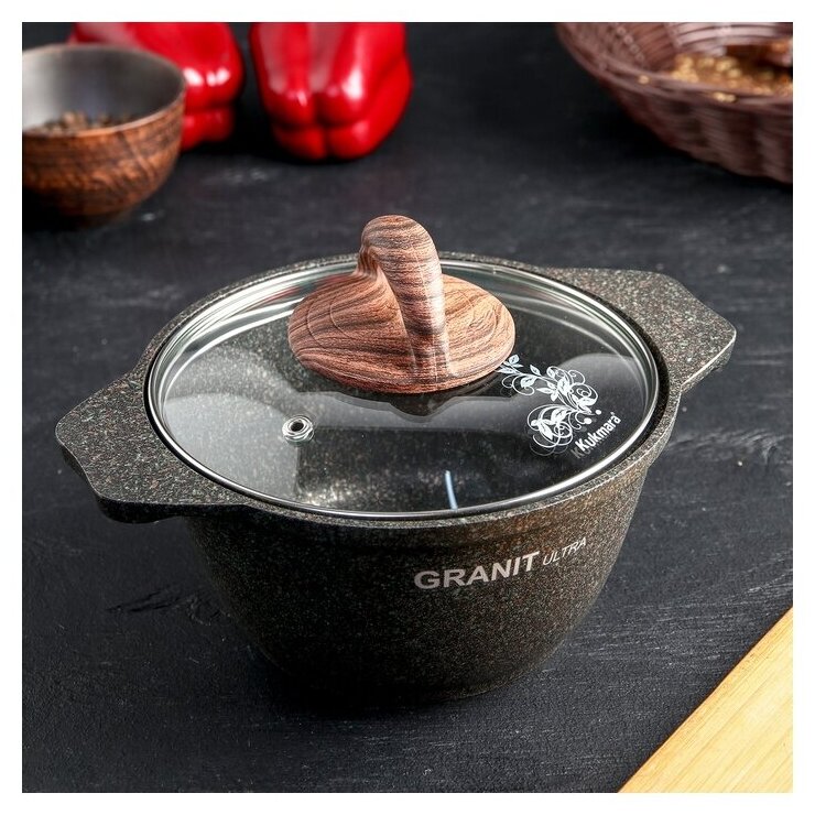 Кастрюля 1 л Granit ultra, с стеклянной крышкой, с антипригарным покрытием, Kukmara
