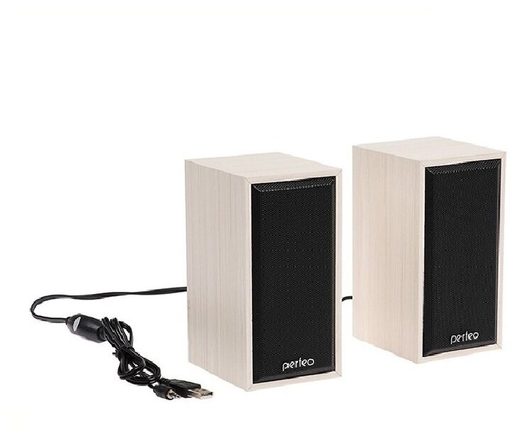 Колонки для компьютера, Компьютерная акустика Perfeo "CABINET" 2.0, мощность 2х3 Вт, питание от USB, белый дуб