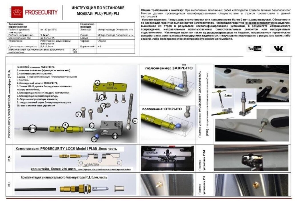 Замки и блокираторы Электромеханический замок двери PROSECURITY PLI со штыревым блокиратором