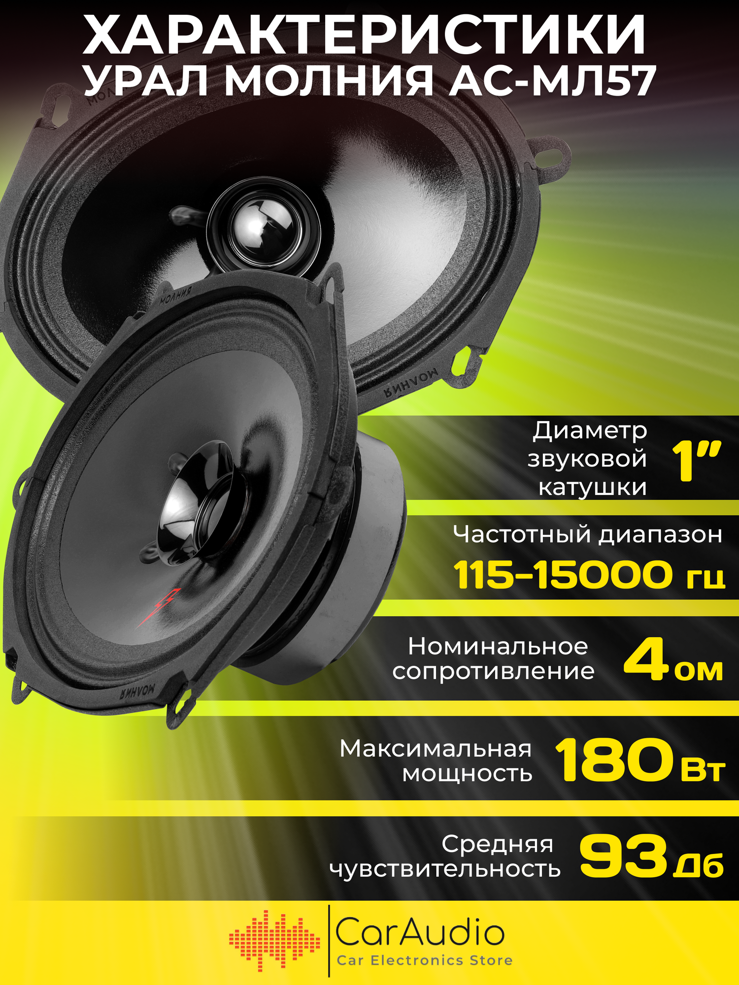 Автомобильная акустика URAL АС-МЛ 57 молния 5х7", 180 Вт, черный