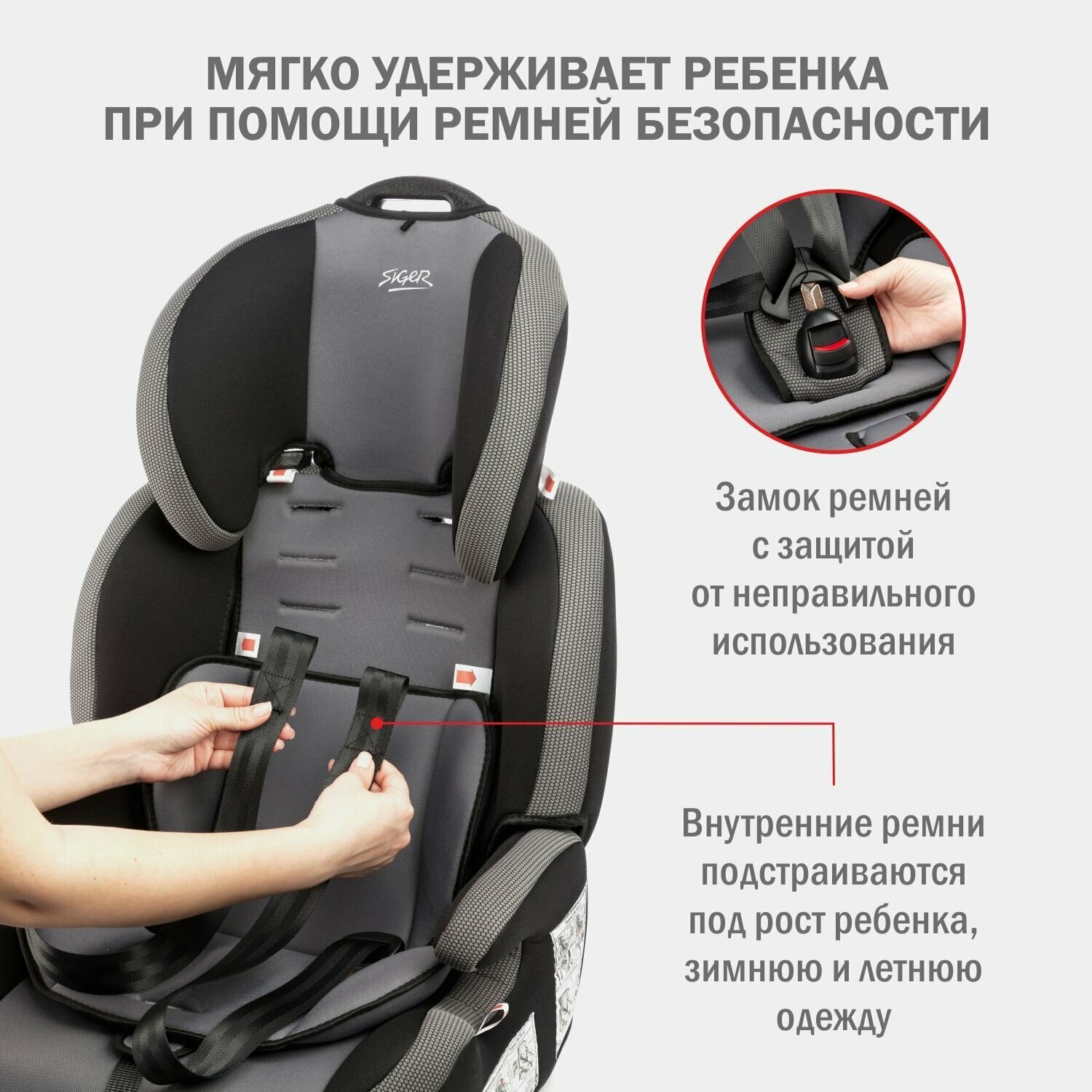 Удерживающее устройство для детей SIGER "Стар ISOFIX" серый, гр. I/II/III, 9-36 кг, 1-12 лет