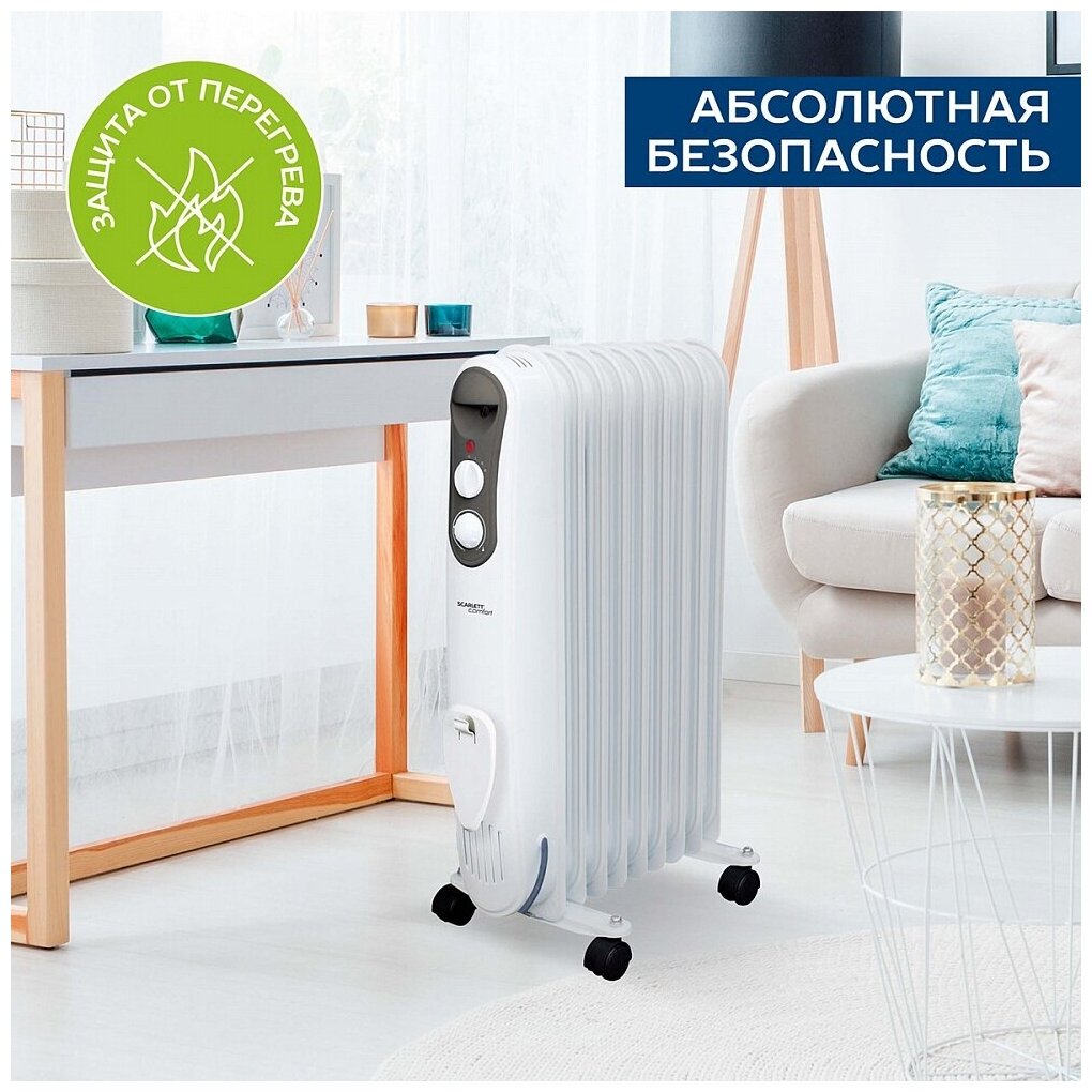 Радиатор масляный Scarlett SC 21.2009 S4 белый, 9 секций, 2000 Ватт, на помещение 20-25м²