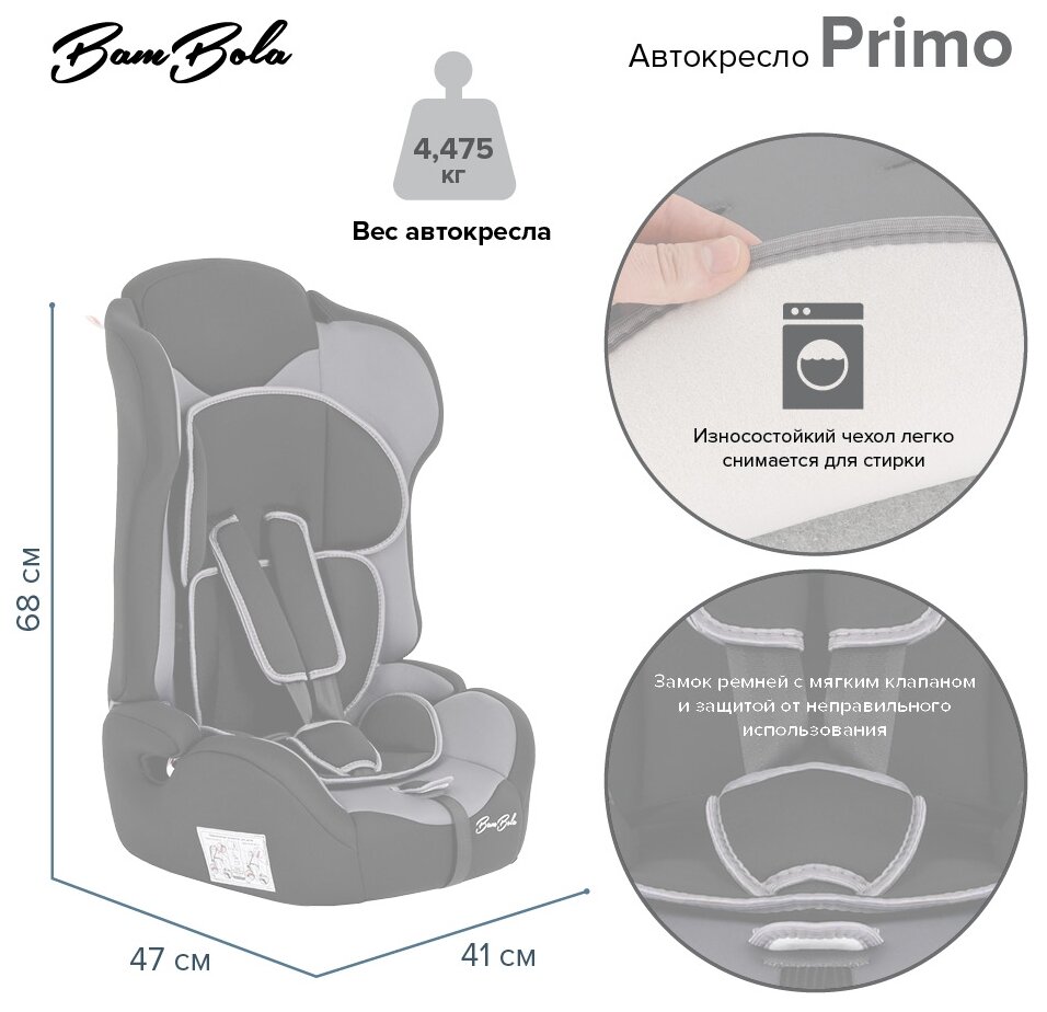 Лучшие цены. Детское автомобильное кресло Bambola Primo предназначено для детей от 1 года до 12 лет весом от 9 до 36 кг. Отличительным свойством автокресла является его универсальность: по мере роста ребенка, кресло легко трансформируется в бустер. Кресло имеет мягкий съемный подголовник и съемный чехол, изготовленный из гипоаллергенного материала. Для малышей от 1 года до 4 лет автокресло оборудовано внутренними пятиточечными ремнями, которые регулируюся по высоте в зависимости от роста ребенка и по глубине специально. Магазины в вашем городе.