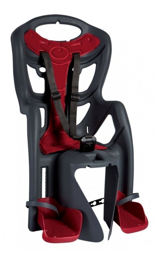 Детское заднее велокресло Bellelli Pepe Standard, на велосипед 29", цвет: тёмно-серое с красной вставкой, вес до 22 килограмм
