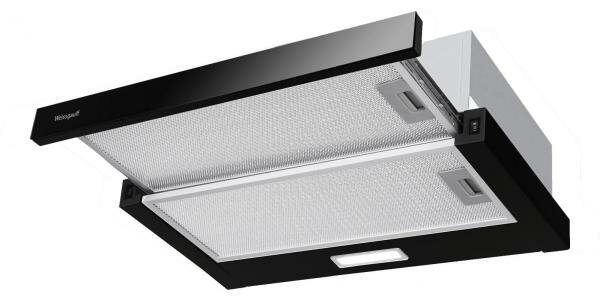 Встраиваемая вытяжка 50 см, 600 м3/ч, телескопическая, 2 алюминиевых жировых фильтра, черный цвет