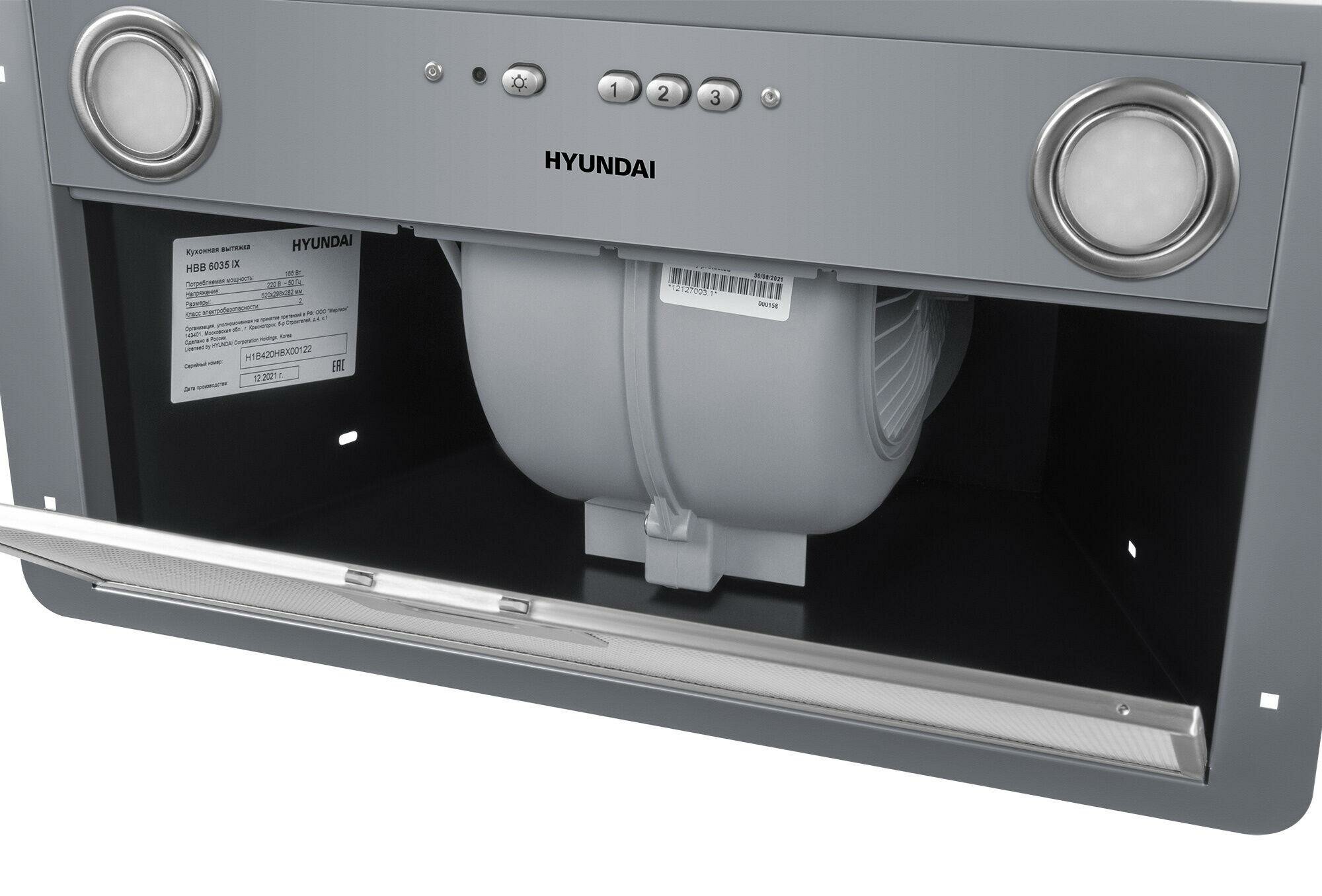 Вытяжка встраиваемая Hyundai HBB 6035 IX серебристый управление: кнопочное