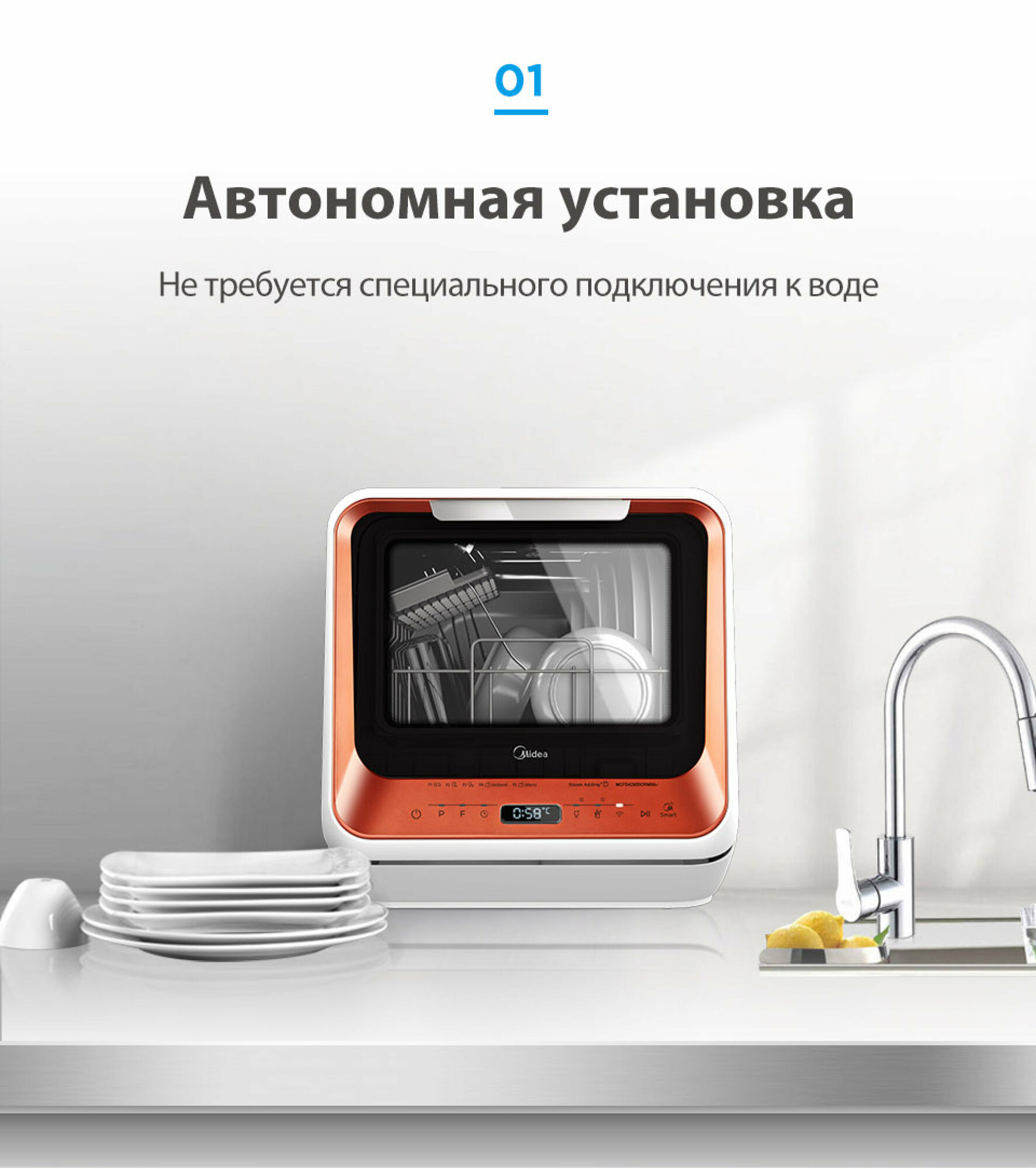 Компактная посудомоечная машина Midea MCFD42900BLMINI-i, голубой 25 990 ₽ Подробнее
