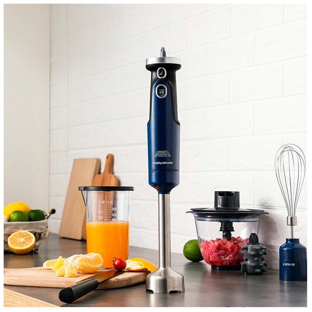 Блендер погружной измельчитель миксер с повышенным сроком службы 4 в 1 с 8-ступенчатой регулировкой скорости Morphy Richards, синий