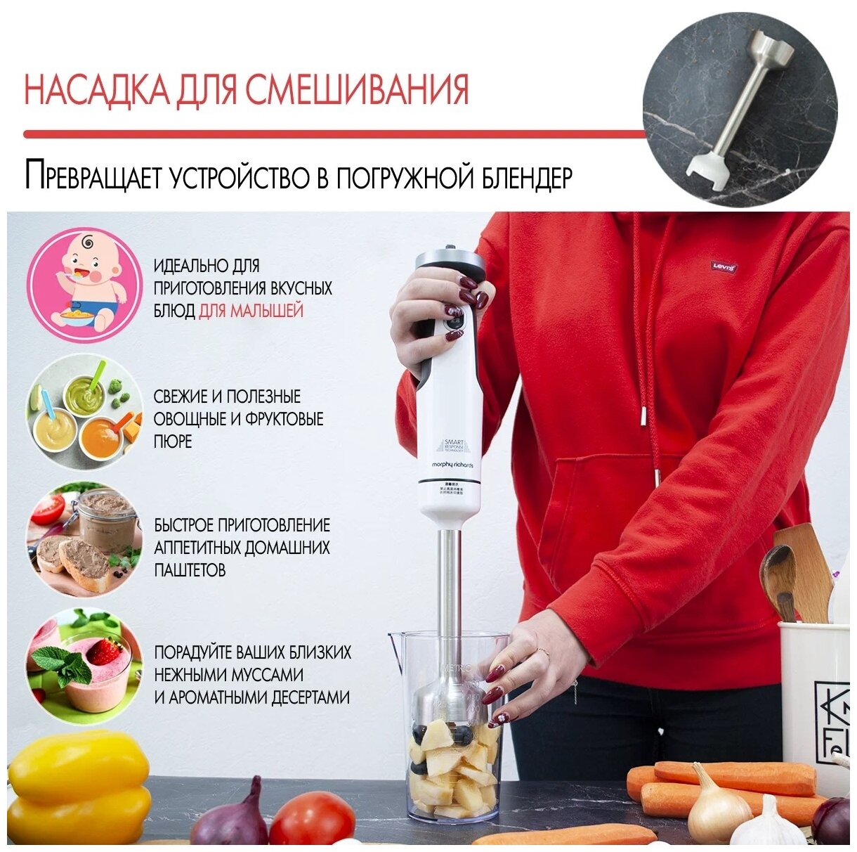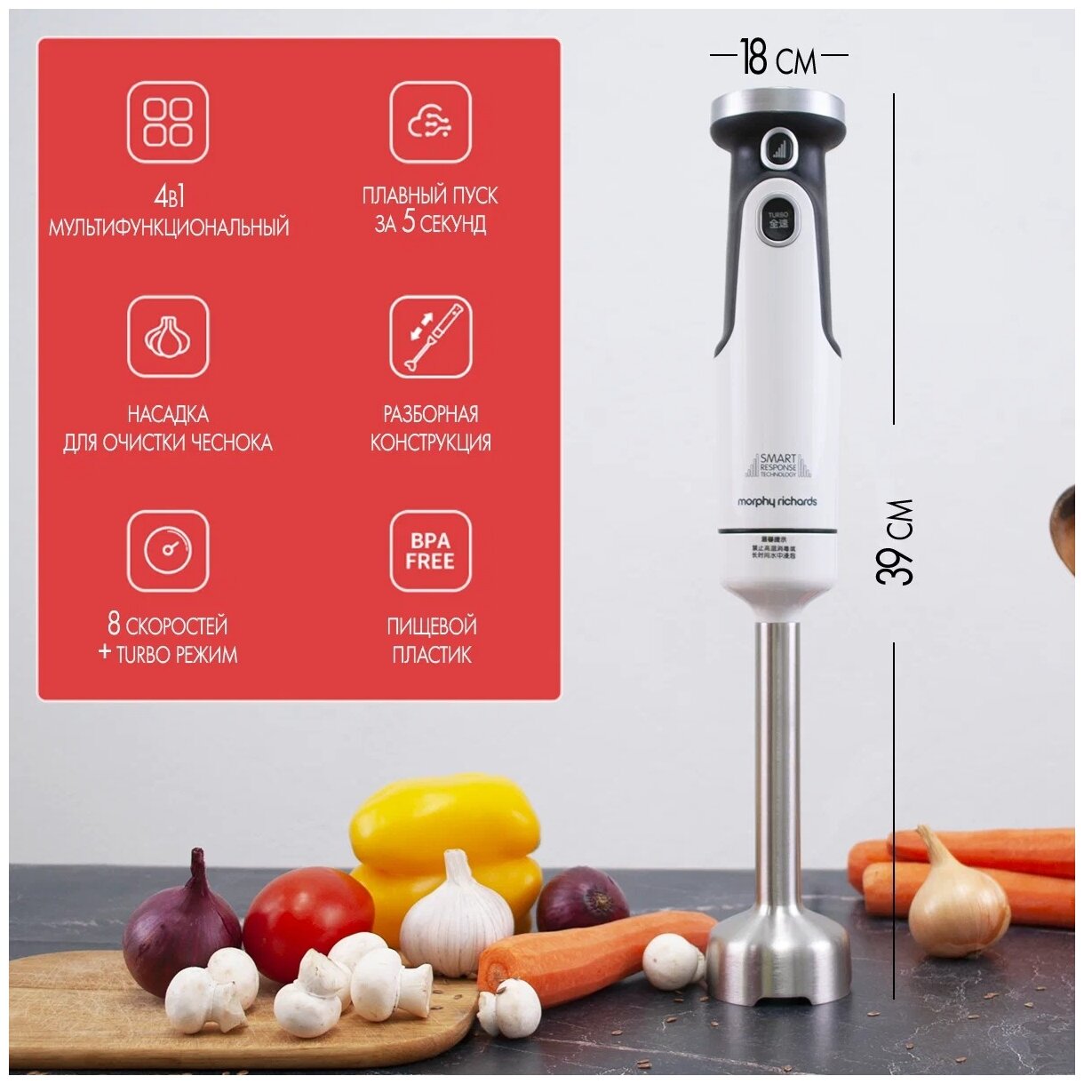 Блендер погружной измельчитель миксер с повышенным сроком службы 4 в 1 с 8-ступенчатой регулировкой скорости Morphy Richards, белый