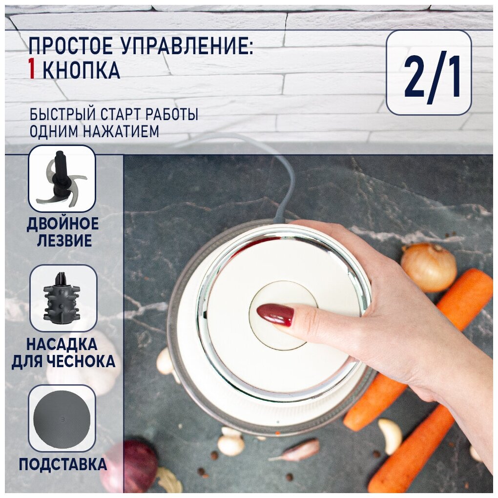 | Насадки | нож для измельчения (2 лезвия) / диск для приготовления соусов |