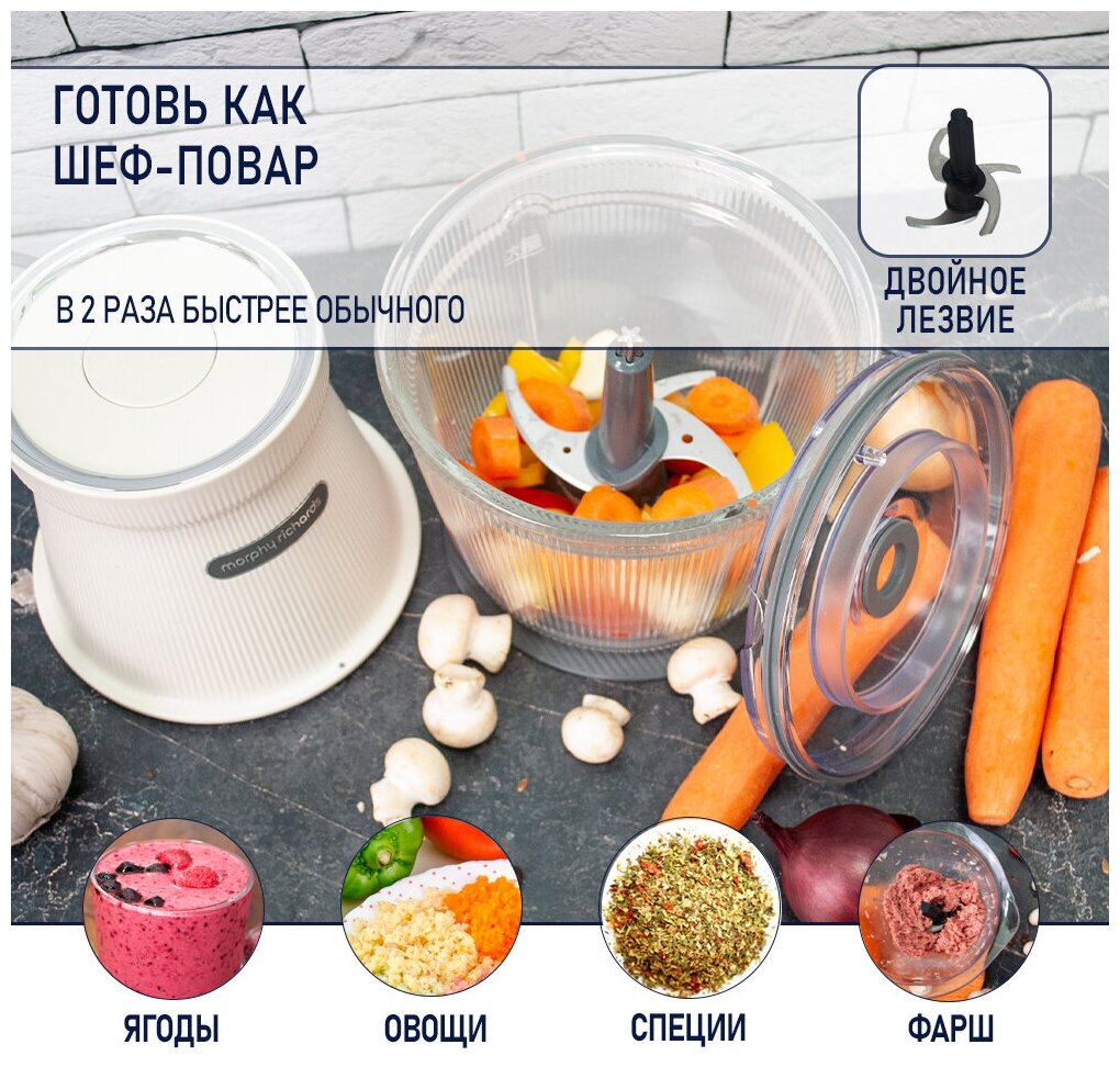 Миксеры и блендеры Блендер измельчитель кухонный электрический, мультирезка, овощерезка с чеснокочисткой Morphy Richards, белый