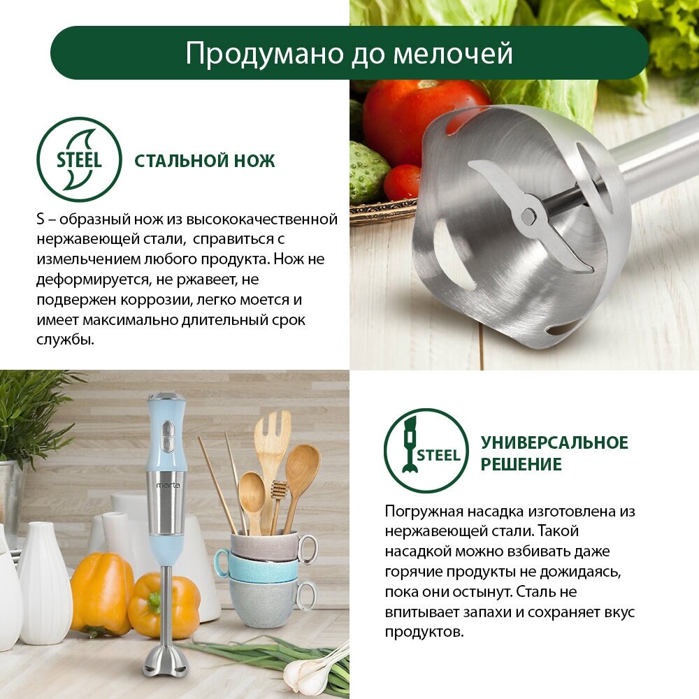 Миксеры и блендеры MARTA MT-1575 светлый аквамарин блендер погружной