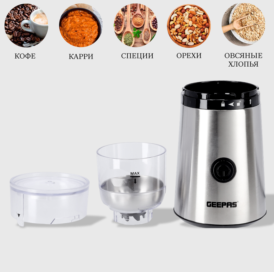 Кофемолки Кофемолка стационарная GEEPAS GCG5471N 160 Вт, серебристый