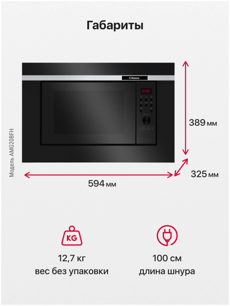 Hansa AMG20BFH, Встраиваемая микроволновая печь 71 070 ₽ Подробнее