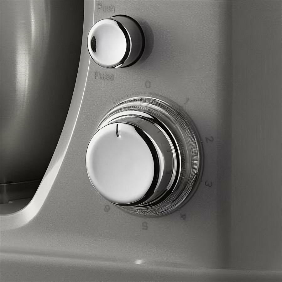 Лучшие цены. Тип: Миксер стационарный; Мощность: 1100 Вт; Число скоростей: 6; Количество насадок: 3; Насадки: для взбивания, для смешивания, для замешивания; Прорезининая ручка: нет; Защитная крышка на чашку: да; Материал корпуса: пластик; Цвет: серебристый; Особенности: импульсный режим; Прочие особенности и свойства: Защита от перегрева., Защита от перегрузки., Плавный пуск двигателя., Объем чаши миксера 5 л. Магазины в вашем городе.