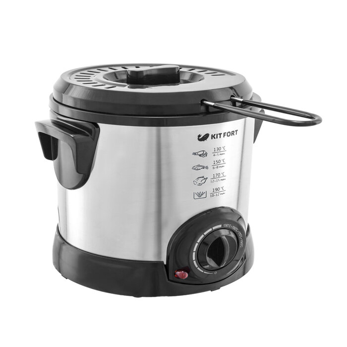 Фритюрница Kitfort KT-2009, 1000 Вт, 1 л, шнур 0.92 м, серебристая