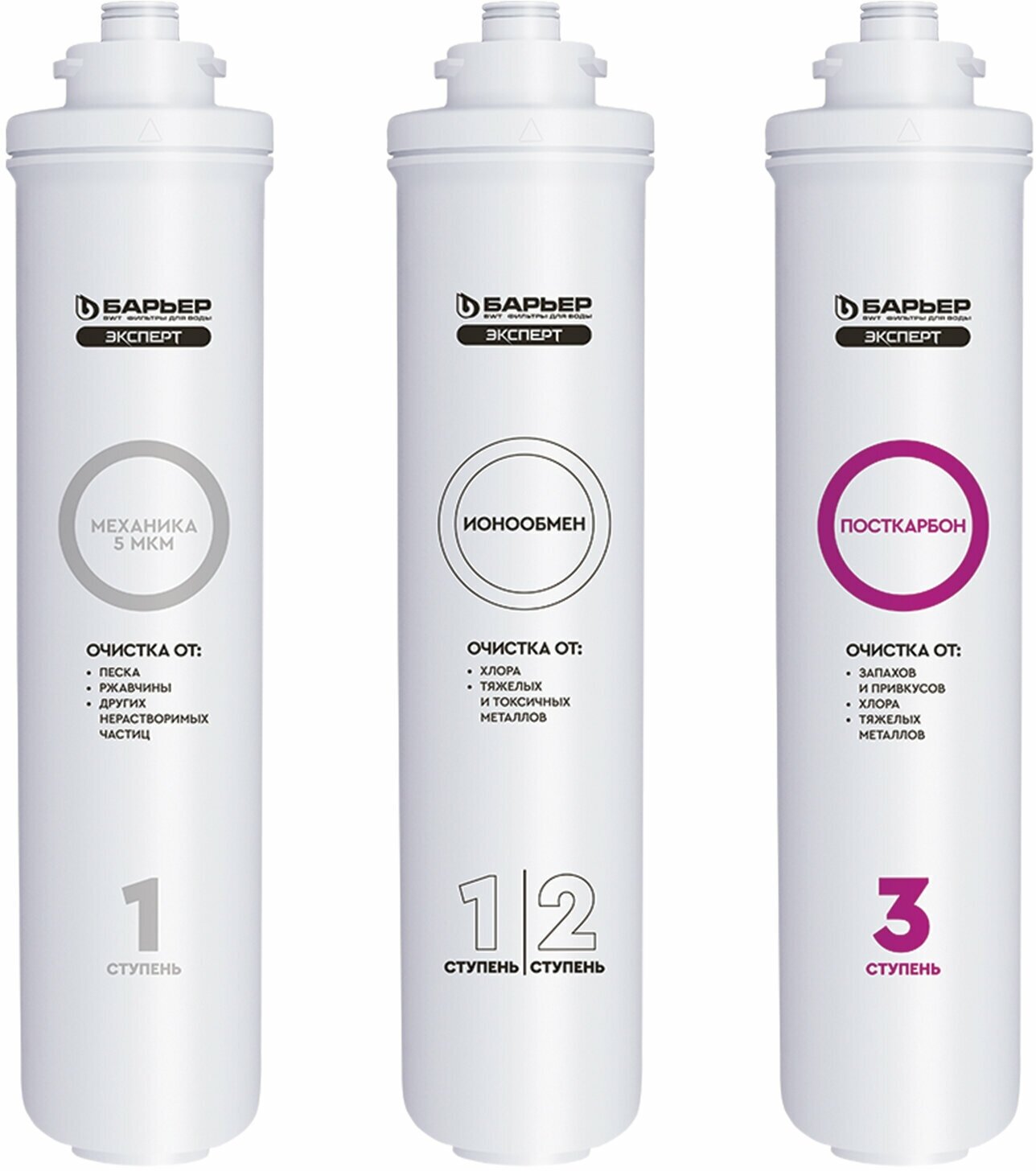 Лучшие цены. Картриджи семейства барьер эксперт для базовой доочистки городской воды от хлора, тяжелых металлов и механических частиц. Улучшают вкусовые качества воды. В комплект входит:1."барьер эксперт Механика" - удаляет любые механические примеси до 5 мкм (песок, ржавчину и другие механические примеси).2."барьер эксперт ИоноОбмен" - используется для эффективного удаления хлора, его соединений, а также тяжелых металлов (свинец, медь, кадмий и другие). Магазины в вашем городе.
