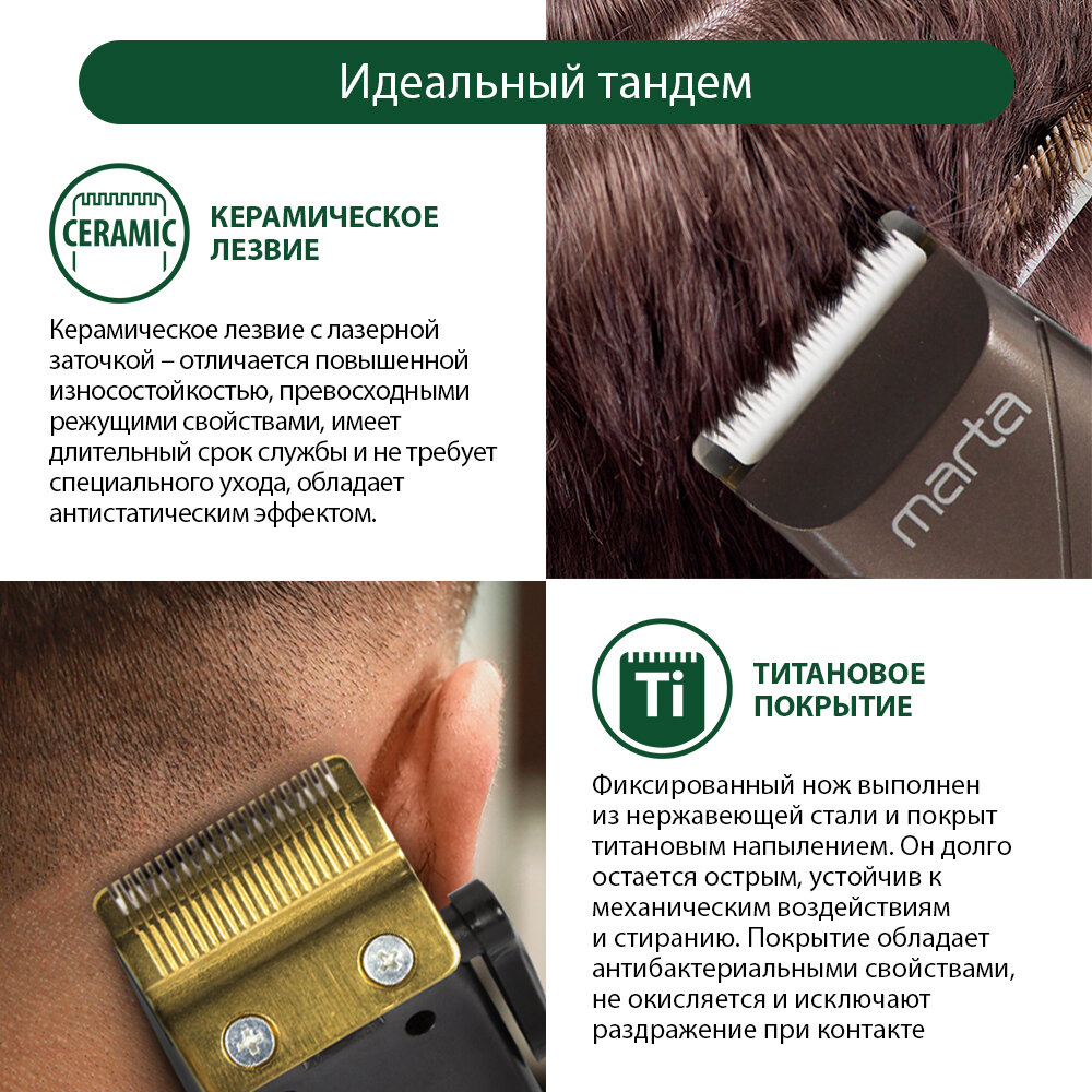 Машинка для стрижки MARTA MT-2220, лезвия титан, керамические, 4 настройки длины, черный 868 ₽ Подробнее