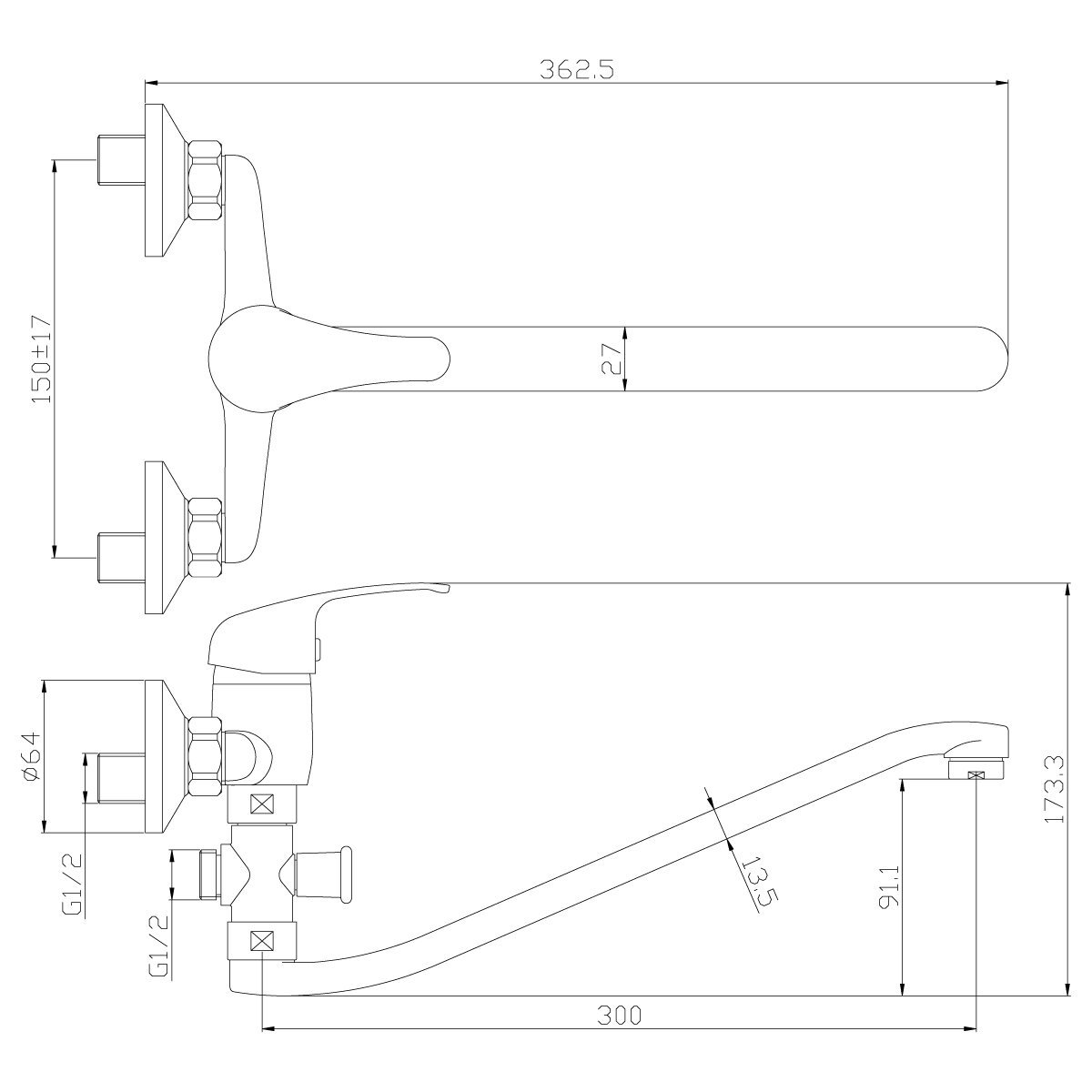 | Высота смесителя | 173 мм |