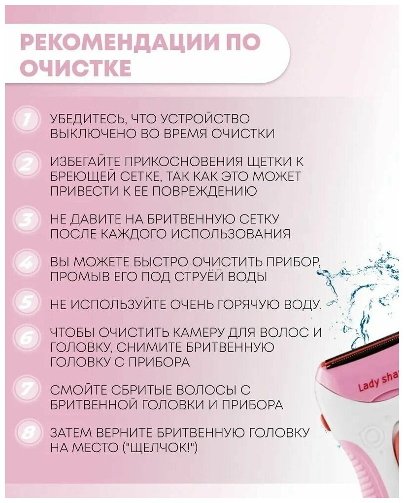 | Функции и возможности | влажная эпиляция / возможность промывки водой |