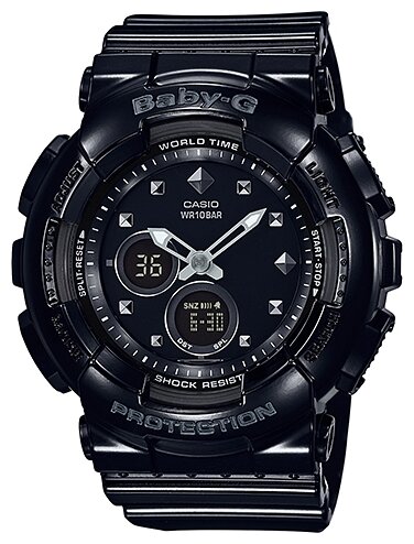 Лучшие цены. Женские японские часы Casio Baby-G BA-125-1A из коллекции Baby-G дополнят повседневный или спортивный образ. Аксессуар по достоинству оценят модницы, придерживающиеся активного образа жизни. Чёрный циферблат украшают металлические стразы, используемые вместо часовых индексов.{=templateTooltip "shockproof" "Ударопрочный корпус"} защищает японский кварцевый калибр, получающий энергию от батарейки. Срок её службы рассчитан на 2 года. Магазины в вашем городе.