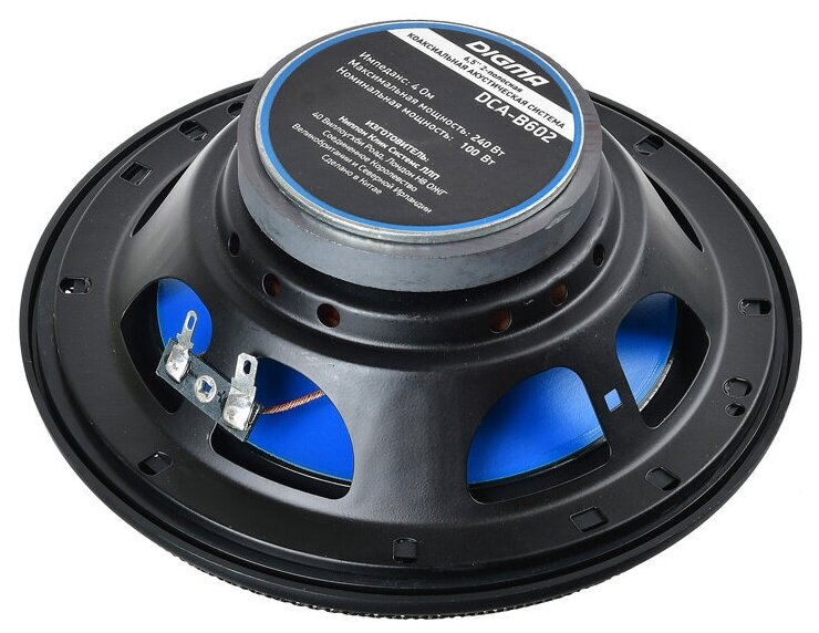 Лучшие цены. Колонки автомобильные DIGMA DCA-B602, коаксиальные, 240 Вт, комплект 2 шт. — бюджетный вариант, воспроизводящий естественный звук. Аппаратура представлена в классическом дизайне, гармонирующем с любой автомобильной обшивкой. Динамики выполнены в темном цвете. Верхняя часть закрыта защитной сеткой. Качество на высоте Акустика с номинальной мощностью 100 Вт транслирует чистое звучание в частотном диапазоне от 70 Гц до 20 кГц. Техника двухполосная. Магазины в вашем городе.