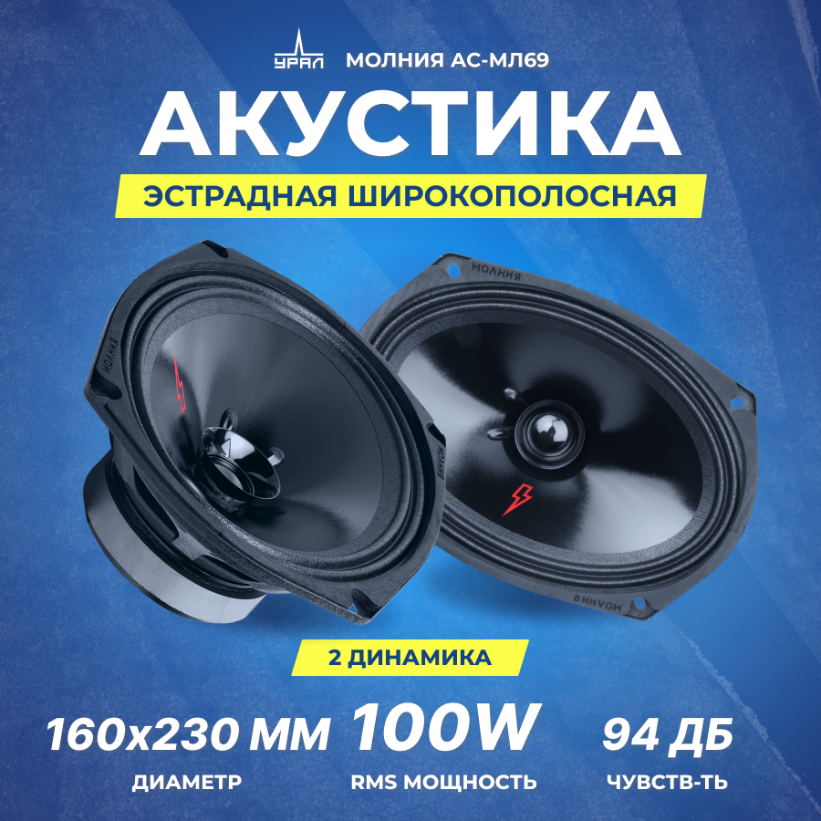 Колонки автомобильные URAL Молния АС-МЛ69, 15x23 см (6x9 дюйм.), комплект 2 шт. [урал ас-мл69] 4 340 ₽ Подробнее