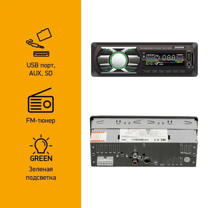 Лучшие цены. Не секрет, что машина давно уже перестала восприниматься как просто средство передвижения, и водители покупают всё лучшее для своих железных коней. Автомагнитола Digma DCR-300G — идеальный выбор, если вы ставите целью и улучшение технических характеристик, и поддержание внешнего вида автомобиля. Магазины в вашем городе.