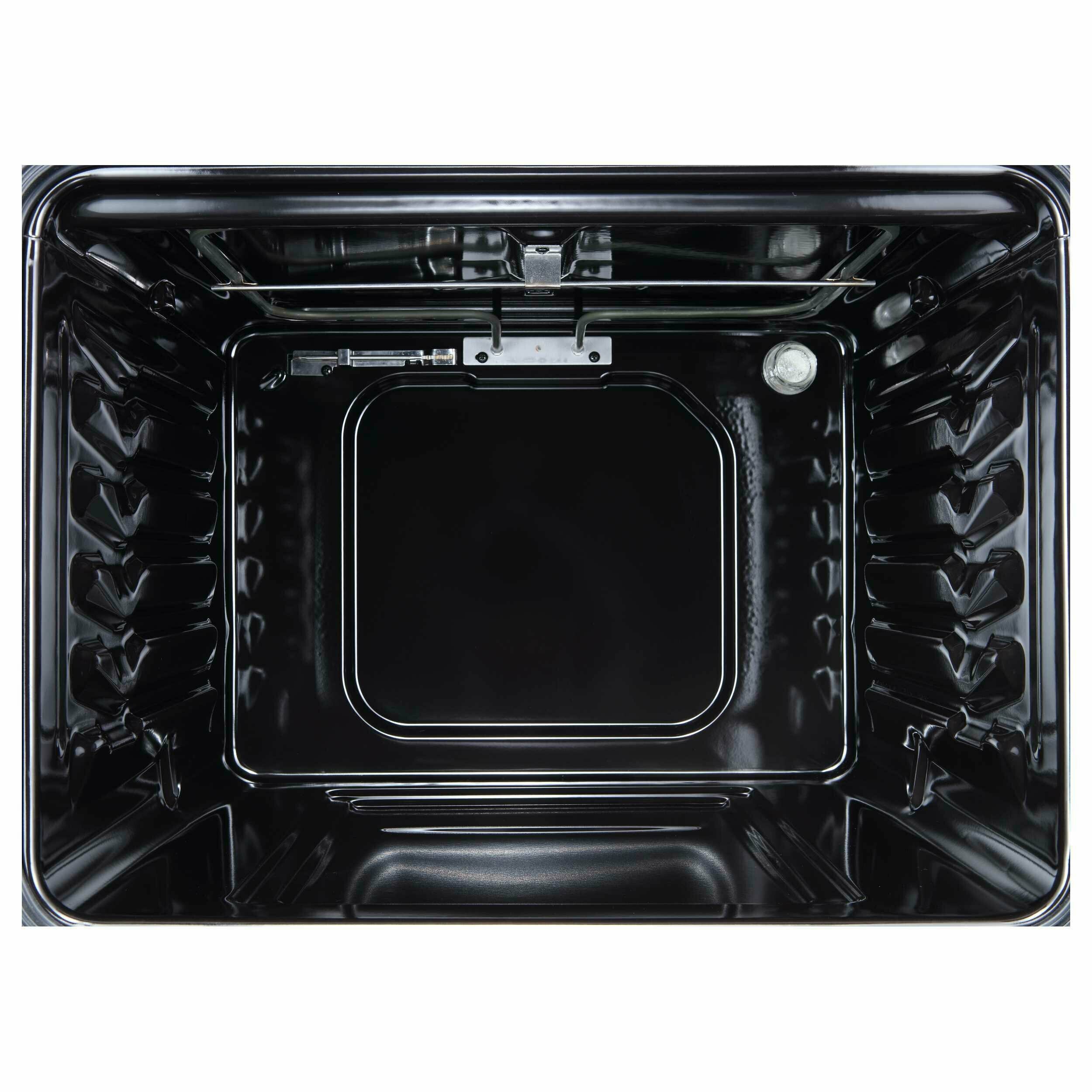 Встраиваемая газовая духовка EVELUX встраиваемый полноразмерный, 60 см, механическое управление, 4 режима, объем духовки 65л, поворотные переключатели, панель управления - черное стекло, универсальный противень, решетка-гриль, двойное стекло дверцы, легко