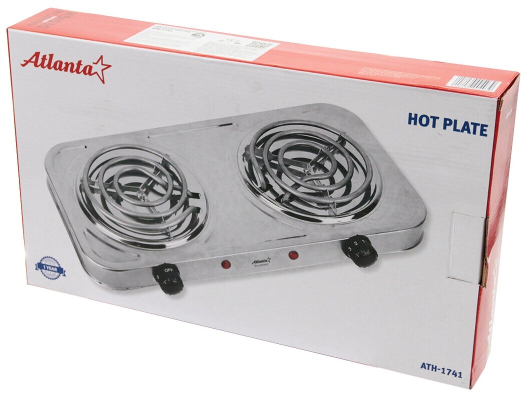 Плитка электрическая ATLANTA ATH-1741, 2 конф. silver
