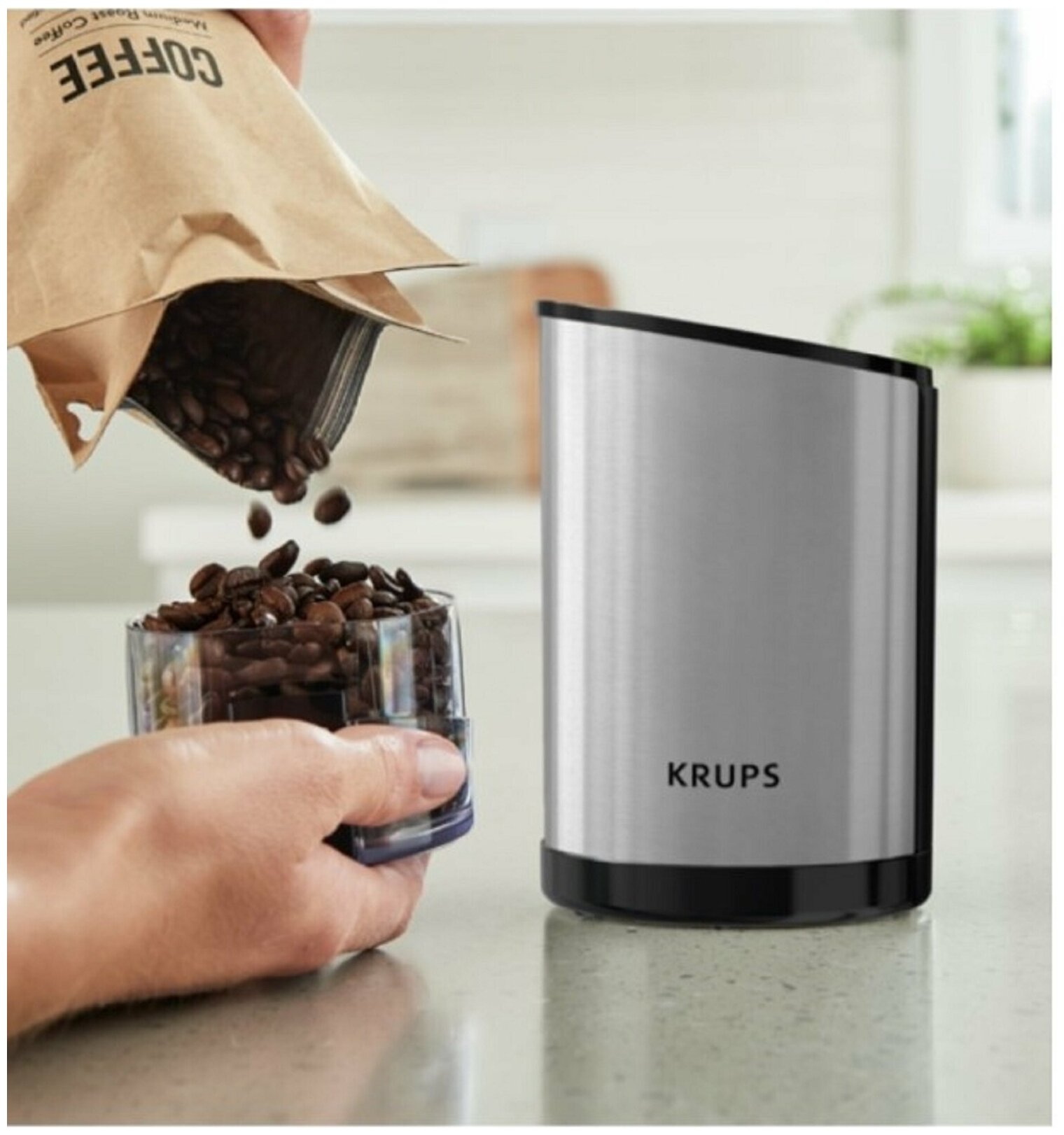 Лучшие цены. Кофемолка Krups Fast touch пригодна для измельчения кофейных зерен для кофеварок бойлерного или парового типа. Мы не рекомендуем использовать кофемолку Fast Touch для измельчения кофейных зерен для эспрессо-кофемашин компрессионного типа. Для компрессионных кофемашин требуется жерновая кофемолка, такая как KRUPS серии GVX или аналогичная профессиональная кофемолка для эспрессо. Магазины в вашем городе.