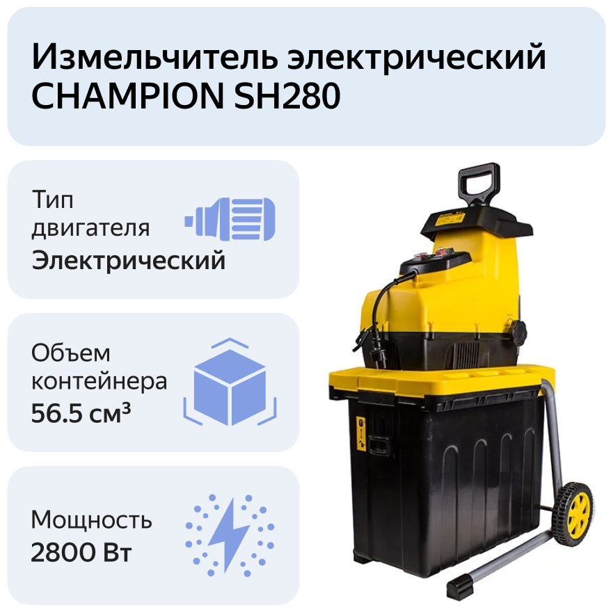 Измельчитель электрический CHAMPION SH280, 2800 Вт 17 600 ₽ Подробнее