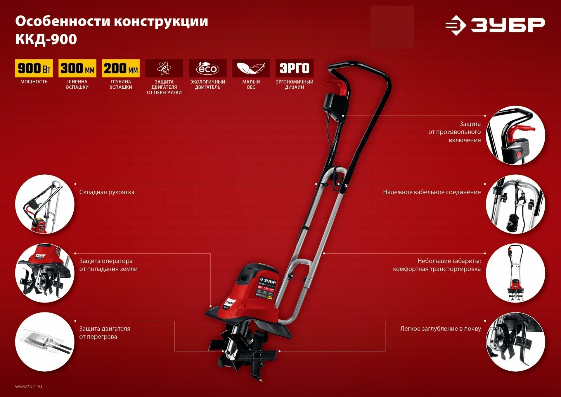 Зубр ККД-900 культиватор электрический, 900 Вт ККД-900