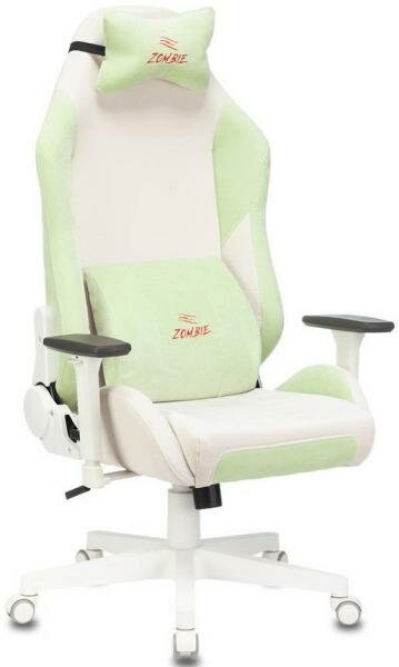 Кресло игровое Zombie EPIC PRO Fabric белый/зеленый с подголововником крестовина пластик пластик белый