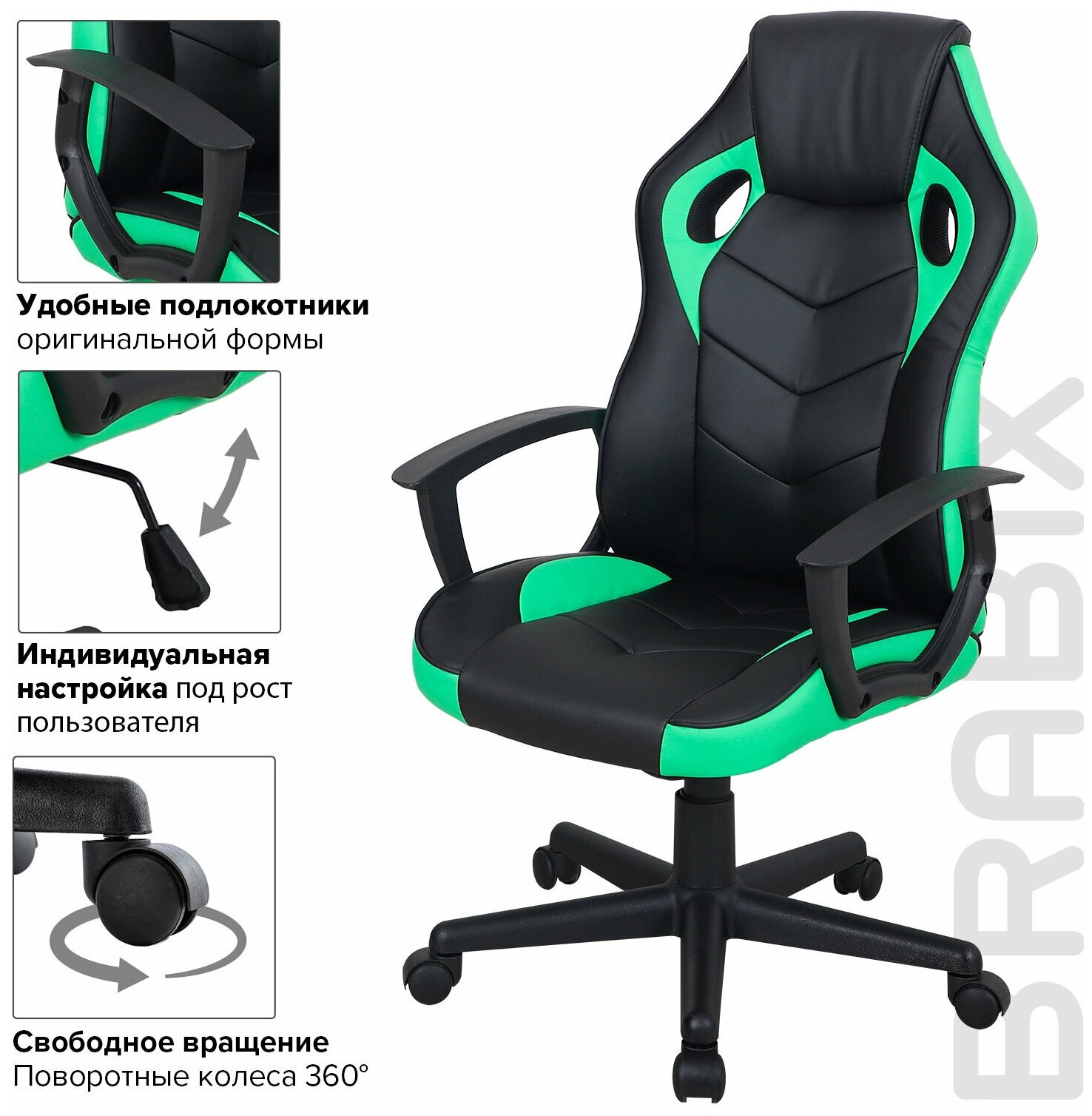 Кресло компьютерное BRABIX «Fighter GM-008», экокожа, черное/зеленое, 532508