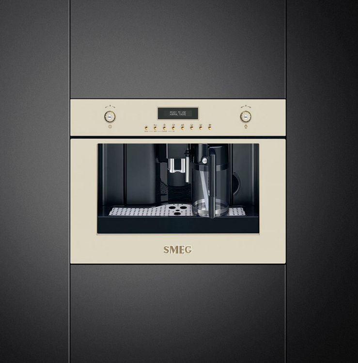 Встраиваемая кофемашина SMEG/ Coloniale, встраиваемая автоматическая кофемашина, цвет: кремовый, фурнитура позолоченная и латунная в комплекте