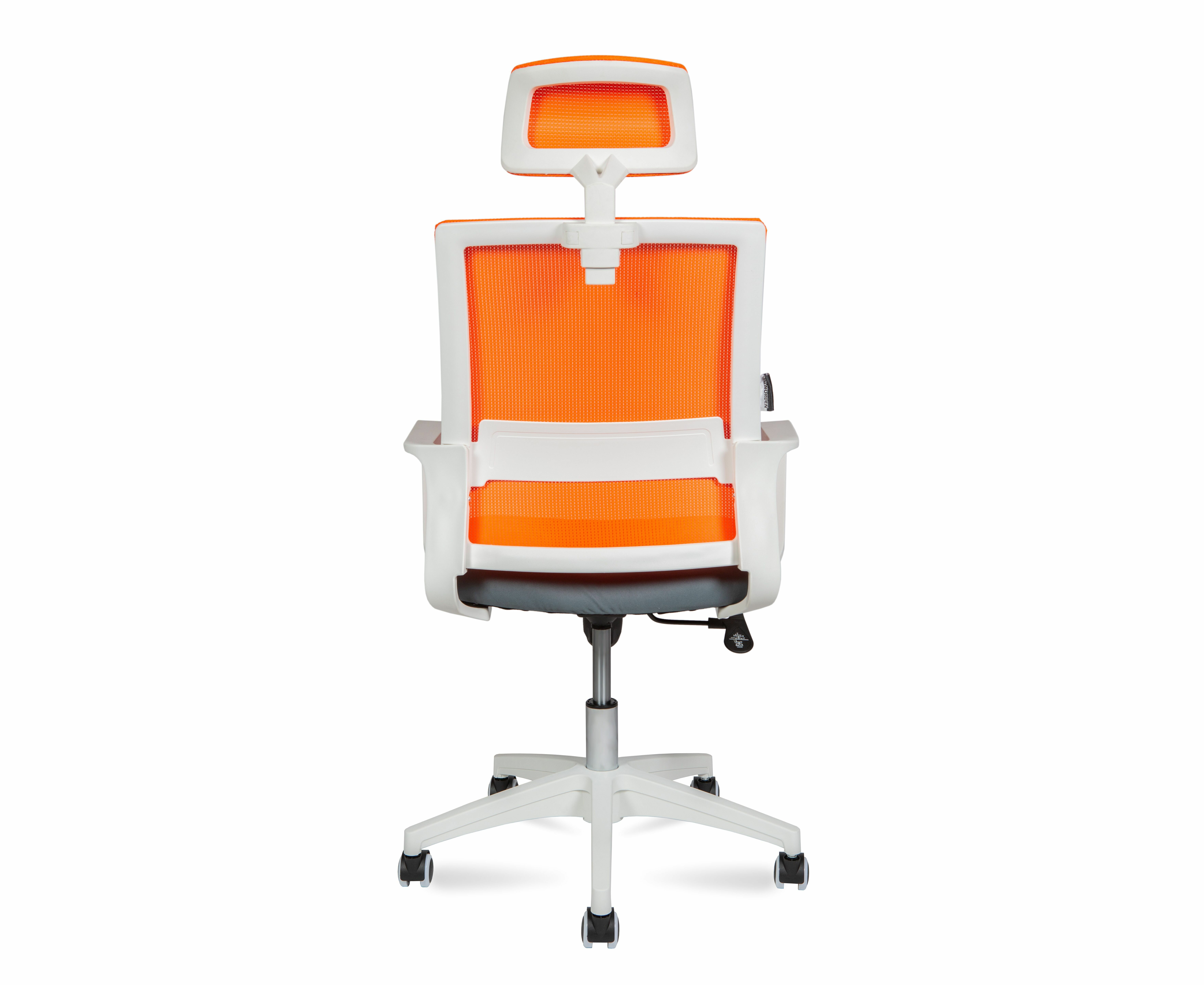 Компьютерное кресло Norden Бит белый пластик оранжевая сетка / темно серая ткань