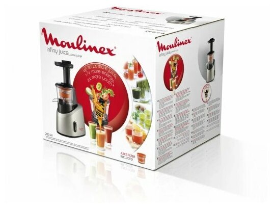 Лучшие цены. Инновационная соковыжималка Infiny Press Compact от Moulinex. Infiny Press Compact виртуозно справляется с любой задачей. Благодаря наличию регулировки оборотов работы и уникальной возможности отжима на пониженной скорости (от 45 оборотов в минуту) можно выбрать оптимальный режим для каждого продукта, что минимизирует окисление светлых соков. Современная шнековая система и использование принципа высокого давления позволяют выжимать овощи и фрукты до последней капли, сохраняя максимальное количество. Магазины в вашем городе.