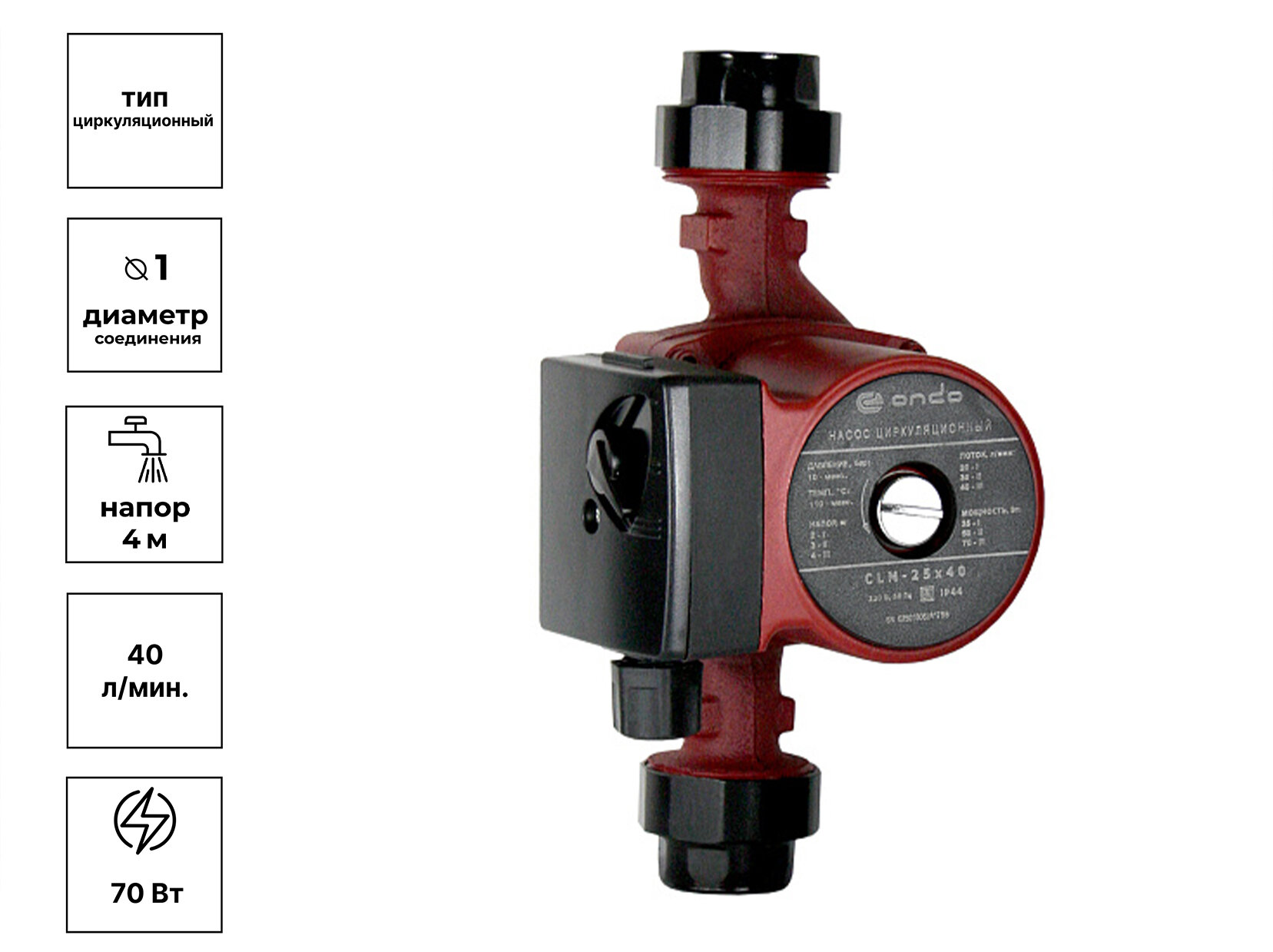 ONDO Насос циркуляционный ONDO CLM 25/4, 70 Вт, напор 4 м, 40 л/мин