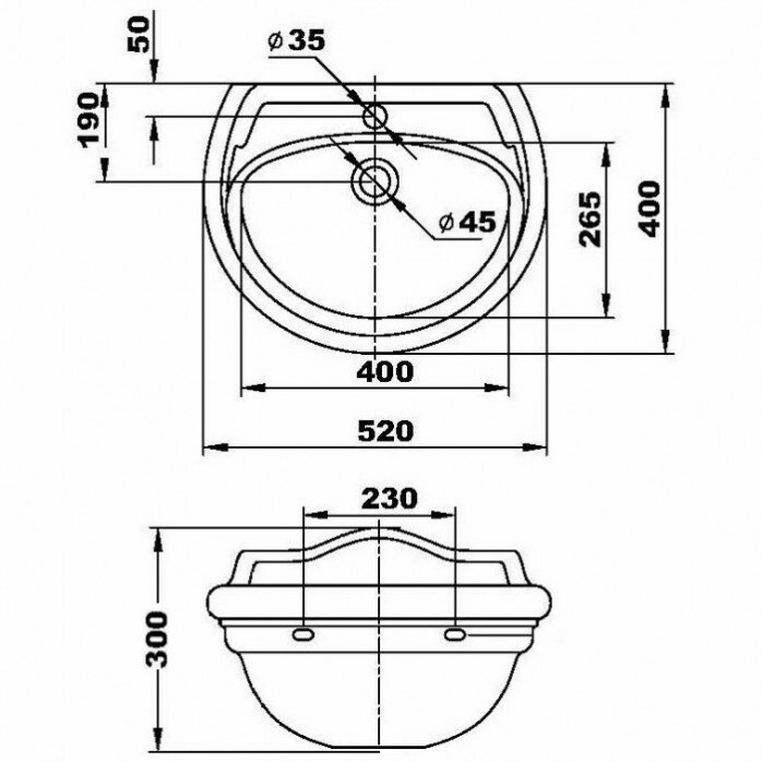 Лучшие цены. Размеры (ШхВхГ): 520 x 300 х 400 мм Комплектация: раковина Особенности: количество отверстий под смеситель - 1 шт отверстие для перелива цвет раковины - белый, белый и декором материал раковины - керамика. Магазины в вашем городе.