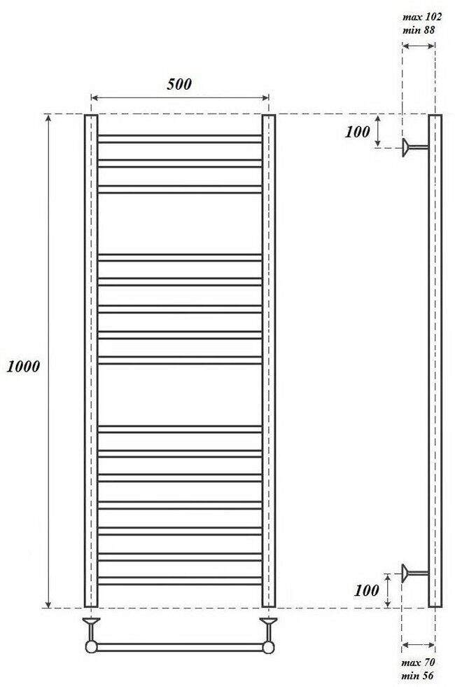 Полотенцесушитель водяной 1000x532 Point Аврора П15 PN10150S