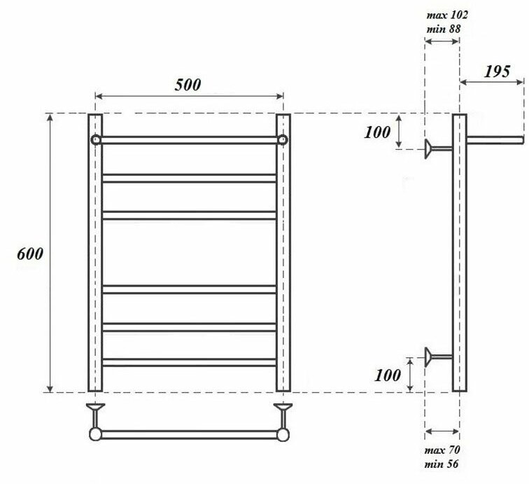 Водяной полотенцесушитель POINT PN10156P П5 500x600 хром